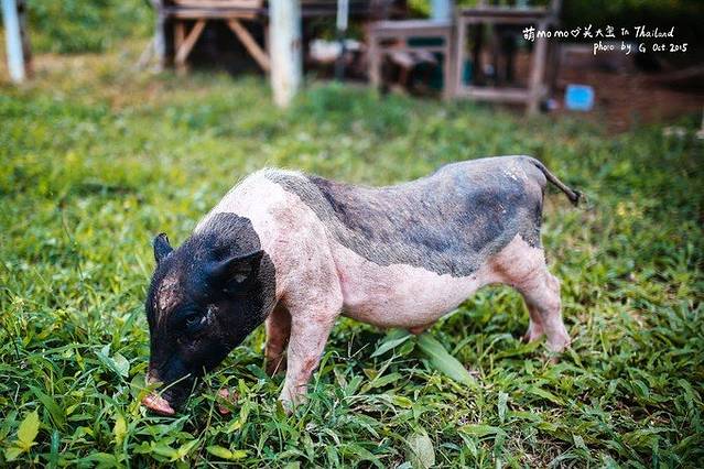 不知道是什么品种的猪,看起来很可爱,跟它玩了一会~