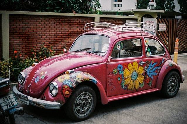 看到一个游记里,几个女孩子要求店老板用这个粉色JEEP送她们,简直是超级拉风~~这个粉色JEEP是属于后面的这家粉色小屋旅馆的~