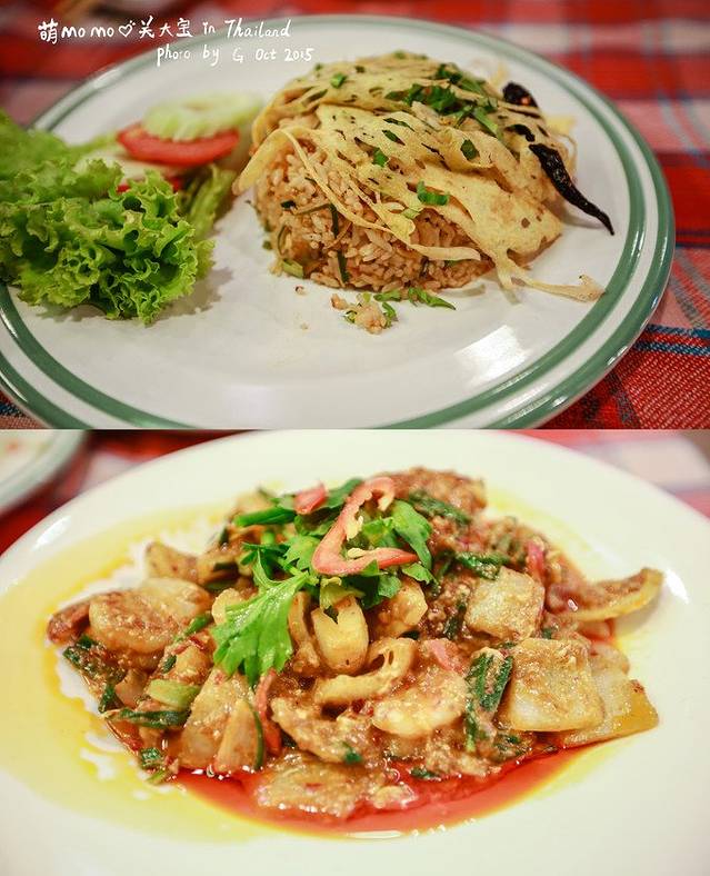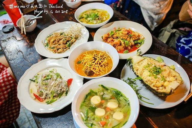 这家饭店非常推荐,算是我在泰国吃的最值得推荐的一家,我们一共点了10个菜,照片中呈现的7个是因为实在饿得等不了摆盘照相啦~~那个咖喱虾非常棒,肉末粉丝也很好~!中间的是咖喱牛肉,靠上的是催催的类似面条的东西~!不过非常非常抱歉,我忘了照他家店名了....而且我家谷歌现在打不开,我没法找到他家的店址,有朋友想咨询的话,看看你那边能不能打开谷歌地图,我帮你找。