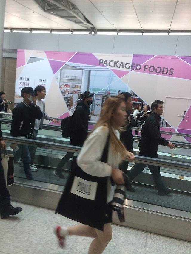 然后准备去候机室的时候就看到前方呼呼啦啦全是人面向我们跑来,才知道原来是韩国明星到了......MOMO直接很丢脸的就跟着跑,告诉我是EXO组合......当然,里面的明星我也不认识,反正我是看到好多好多小姑娘在跟着跑,真是感叹现在的年青人....