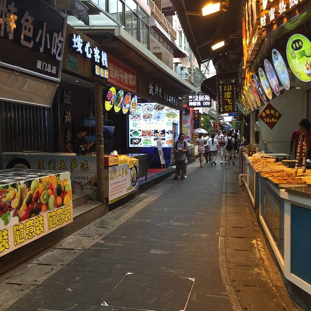 听来的出租车师傅说,这里的夜市热闹,晚上会有很多酒吧。我们来的实在太早了(幸亏来得早万幸,6点台风就发作了),人还是比较少的,但店铺是几乎全部都开门营业的。