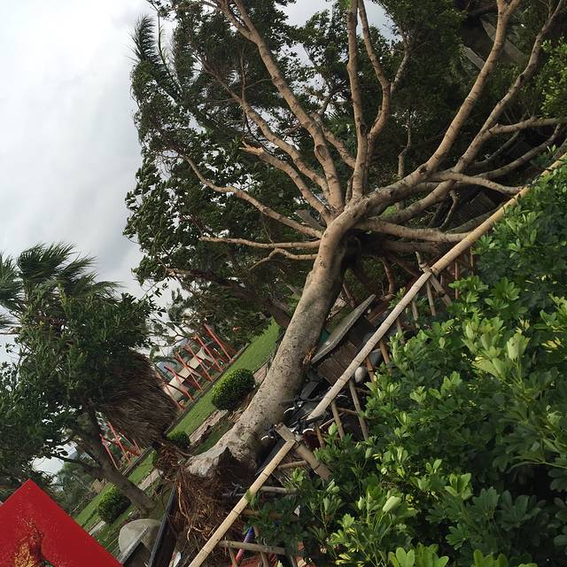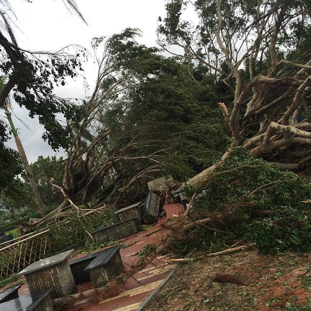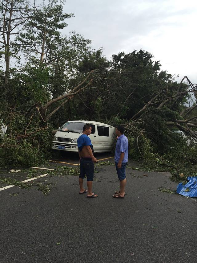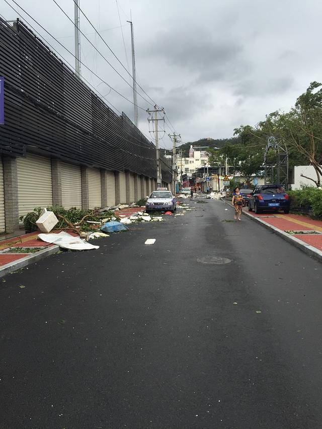 15号真的一塌糊涂,一比吊糟,一片狼藉。全市停电,路上全是积水和被风吹睡倒的树。