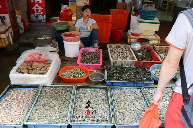 八市,是厦门第八海鲜市场的简称,也就是一个菜市场,是当地人去买菜的地方,所以海鲜什么的比较便宜,买了就可以在那边加工,在轮渡邮局公交站下车,离去鼓浪屿的轮渡码头很近,所以建议玩完鼓浪屿回来去八市逛一下。