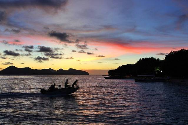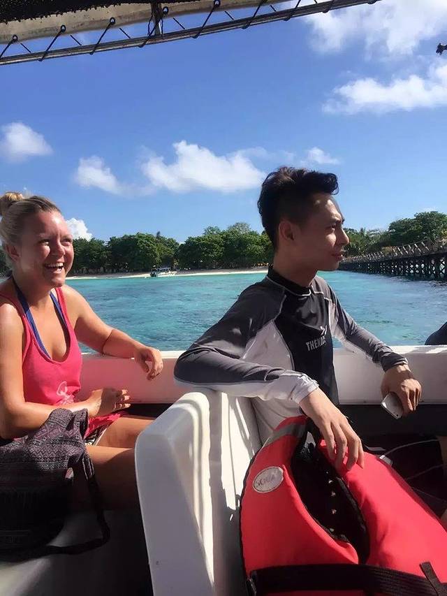 船上的我们 吹着海风 看着蓝天 真想把这里的云带回成都 一路美景 终于到达度假村 小岛上真的很安静 听不见吵杂的人群 听见的只有鱼儿在水里游动 大自然的声音 我们看到了心爱的火烧云 海面的大海龟偶尔跳出头来 鱼儿在夕阳下海面跳舞~