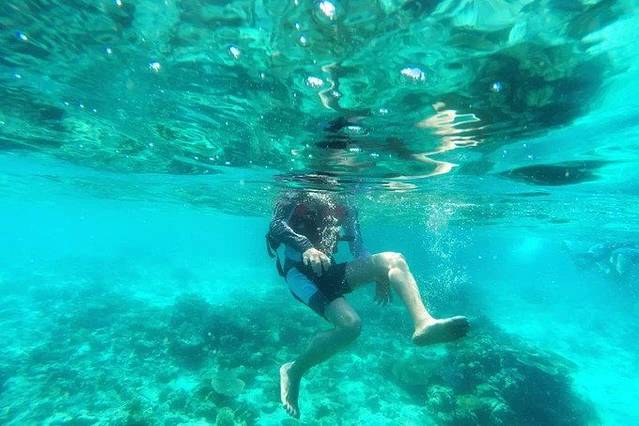 感受到美景美食的我们 选择了去马达京岛浮潜 在这里 水面平静 景色美丽 浅水区有大面积珊瑚