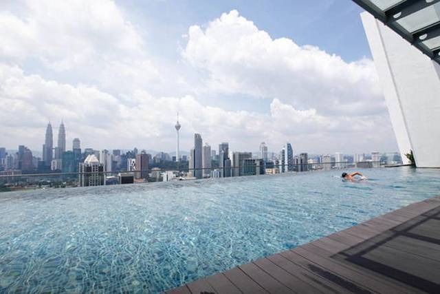 公寓37楼是高空的游泳池 因为我们去的时候在维修 没能上去 盗一张房东的图 真的超棒