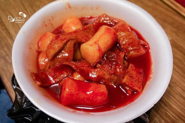 济州岛的辣年糕貌似和上海买的有点区别 是有甜味的~~~~啊哈貌似我和老远吃的很开心