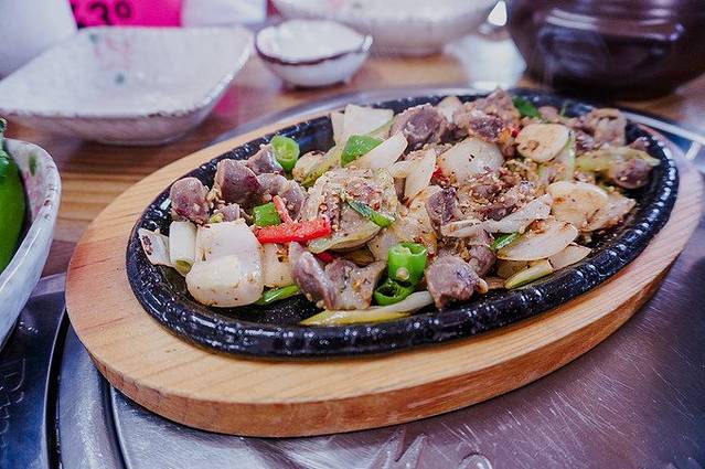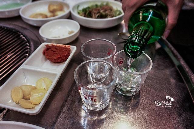 我们3个人点了800G黑猪肉,然后烧酒喝上了。。。。。。。