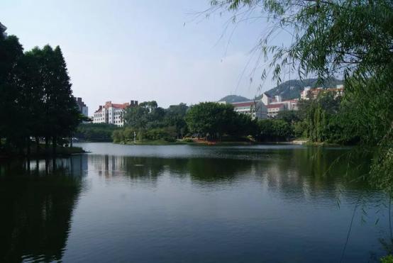 芙蓉湖畔风景优美,波光潋滟,建筑的倒影掩映其中,岸边垂柳依依,静谧中如梦似幻。