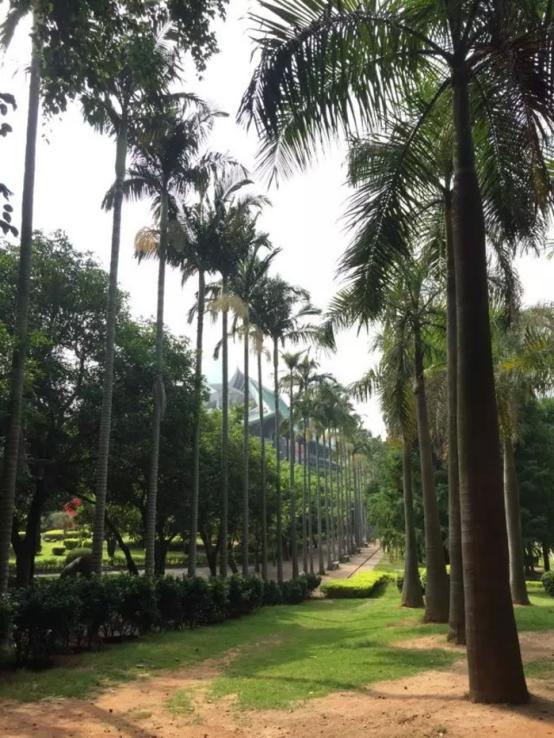 美丽的椰树长廊。长廊里有着长长的梦伴随着校园里年轻一代整个青春的脚步·····