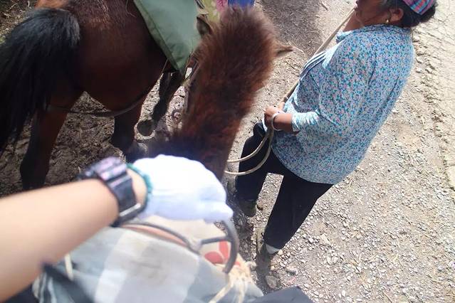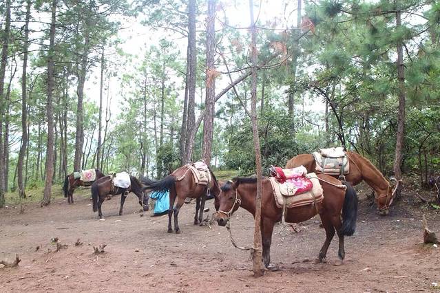 到了山顶让马休息一下,也可以买些马粮喂它们,5¥一碗玉米