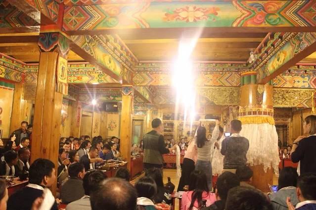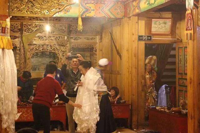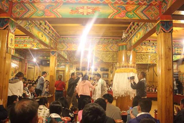 藏族人唱歌的时候我们表示诚意上去献白围巾