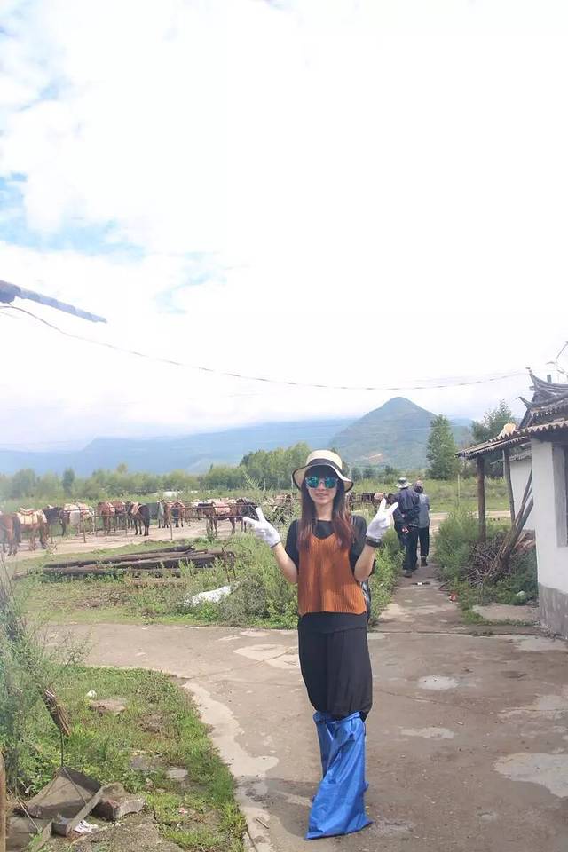 戴好手套穿好脚的防泥袋来一张,手套是包含在票里面的,脚的防泥袋要买,15¥一对,建议买,因为骑马过程中会弄脏裤脚