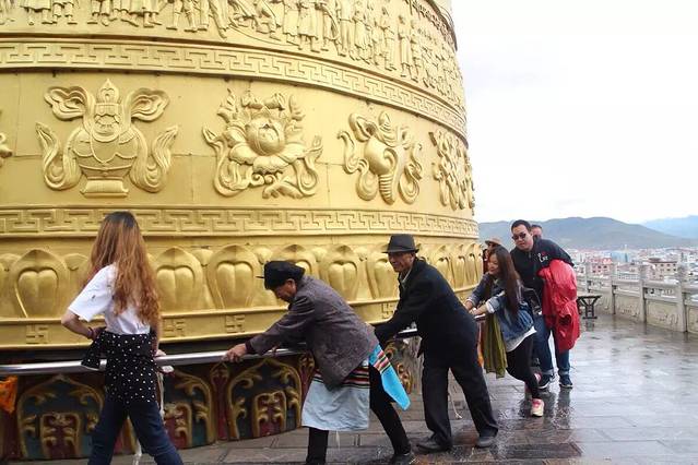 第一个地方是这里的一个寺庙,参观完寺庙就来这旁边的转经筒