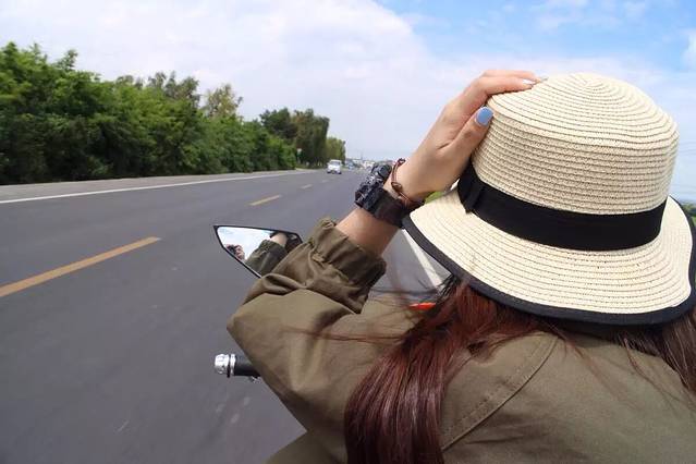 一开快风就容易把帽子吹掉,只有用手捂住,还是买那些有条绳子的安全些