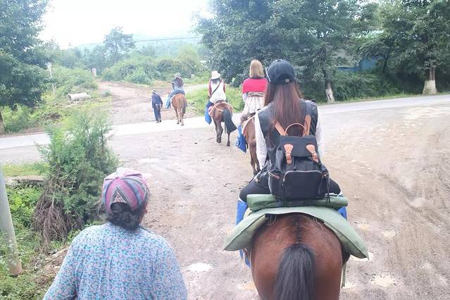 第二天早上八点多就有司机打电话过来了,本来叫我们九点半出发,但是都是刚起床就约到了十点,洗漱完赶紧去吃了早餐就去等司机了,因为我们去的是五个人,刚好一辆面包车,专车接送,很赞,车程四十分钟左右就到了,我们首先骑马
