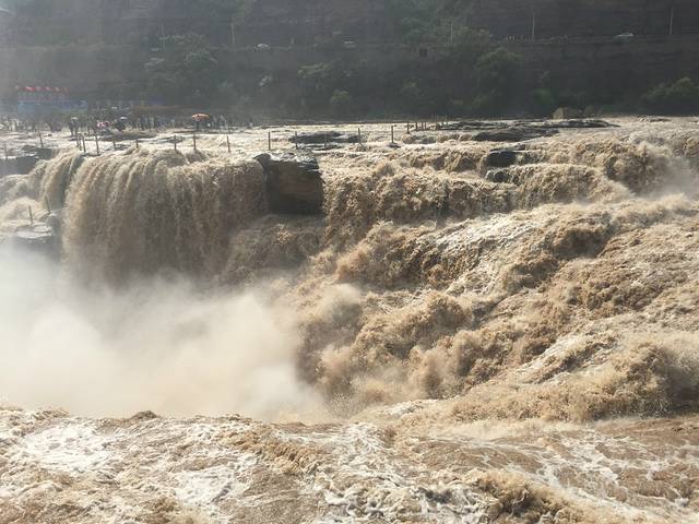 本来打算这一天的行程是王家大院加上乔家大院的,可是心心念念惦记的壶口瀑布怎么办呢,改变行程,参观壶口去啦!于是前一天订行程,第二天参观完了王家大院,就直奔临汾吉县的黄河壶口瀑布啦,黄河壶口瀑布是中国第二大瀑布,世界第一大黄色瀑布,每年8月下旬到10月上旬是最佳观赏期,非常壮观。我们是在山西这边看,瀑布对面就是陕西省延安市的宜川县,而且柯受良和一名当地的小伙子朱朝辉还分别驾车和骑摩托车飞跃过壶口瀑布,很厉害~其实,此行我觉得最最值得看的景点就是壶口瀑布,那种壮观的感觉是很震撼的,而且下到龙洞下面看黄河水倾泻直下的那种无法形容的广博感,瞬间觉得自己很渺小,当然付出的代价是鞋都湿了。强烈推荐吉县的苹果,由于种在山上日光强度高,加上山西省气候早晚温差大,富士苹果真的又甜又脆,可惜不想背只买了6个~
