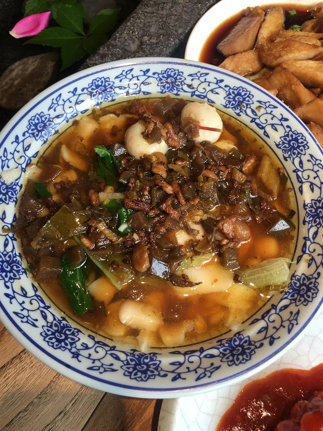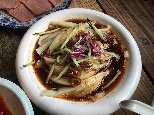这是当地的特色面食-泉水碗秃,有点像川北凉粉,但是不够辣,不够凉