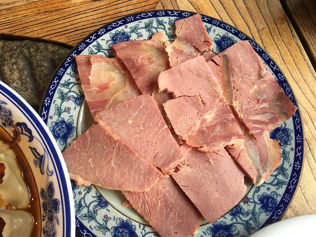 牛肉栲栳栳-有典故,是寓意士兵们靠的牢牢的。莜面制品。