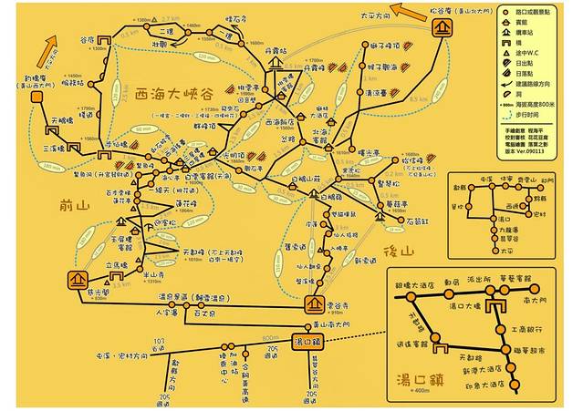 黄山的地图很多很多,我表示我只推荐大家下载这个地图。大板的大家可以自己搜或者问我要。这张地图的好处就是简单明了, 还有有计算来回时间比那种上面一堆文字的好太多。