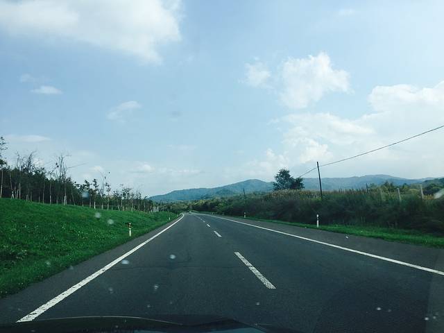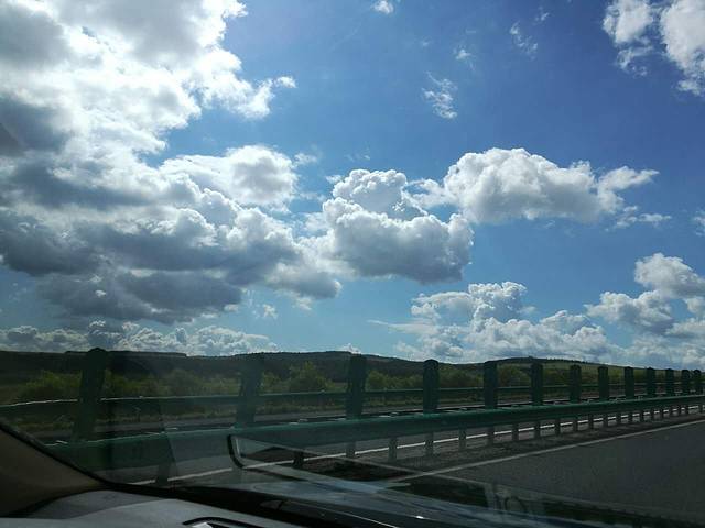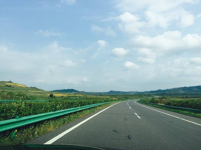 都是山地,蓝天白云,特别好看,有一种大西北的感觉。