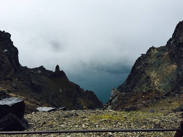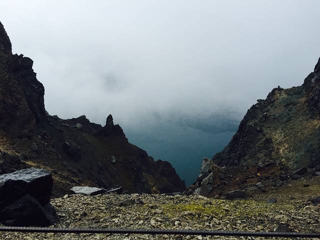 山顶天真的很冷,穿棉衣还冷,雾很大,很大!但是,我们很幸运的看到了天池一角,不过很快就被雾遮住了,后面上来的人,都是看雾吹冷风,都没有看到。