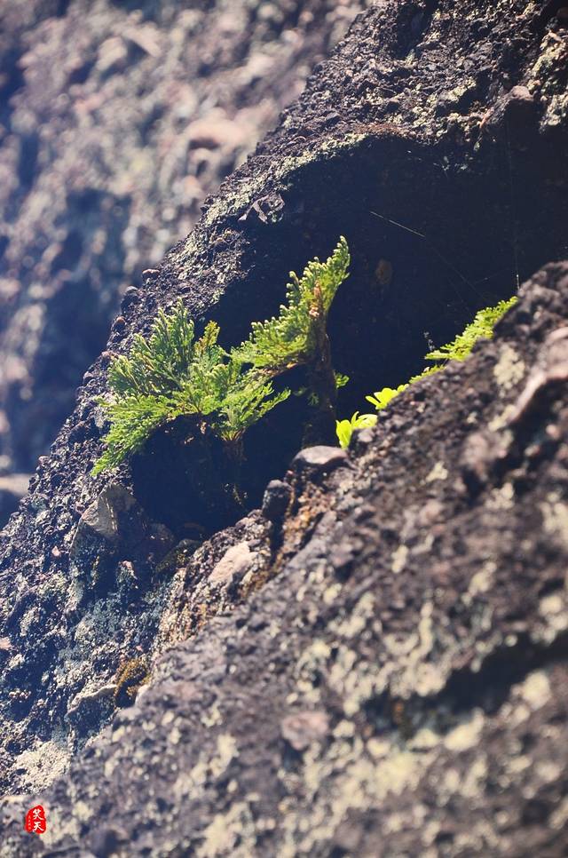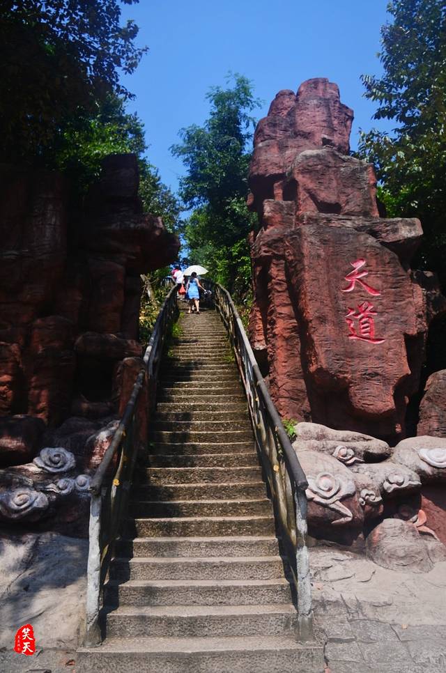 下得山来,以为游程就此结束,却不想又再乘索道,上到另一高处。那片所在,虽不似前峰栈道之视野开阔,却以幽静为胜。树木葱茏,盘藤曲冉,慢享山间凉意;渴了,自石壁掬一捧“聪明”山泉,解渴之余,大约还可聪明些个?