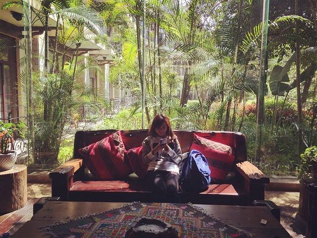 进入酒店大堂,办理入住,酒店的装修有点泰式风格,四周环绕树木,住在森林里的感觉~