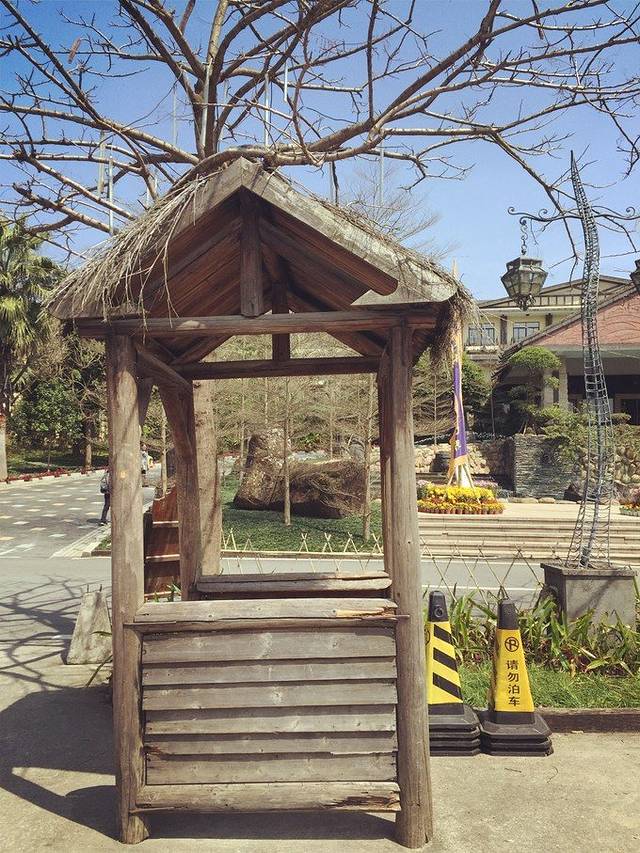 连保安亭都是小木屋的样子,可是保安叔叔呢?难道去偷懒了吗?