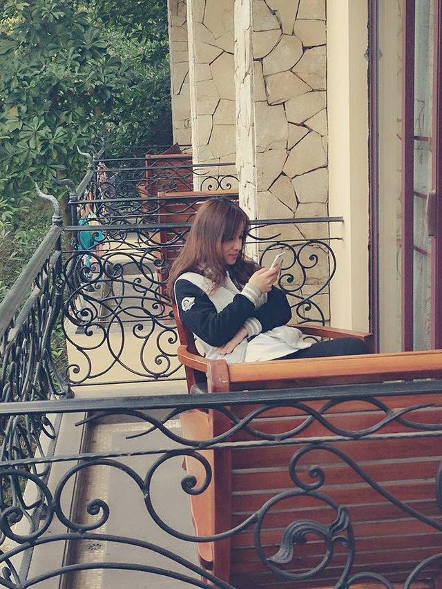 早早地起来了!出来阳台呼吸一下新鲜空气,玩玩手机!隔壁的芳姐拍的