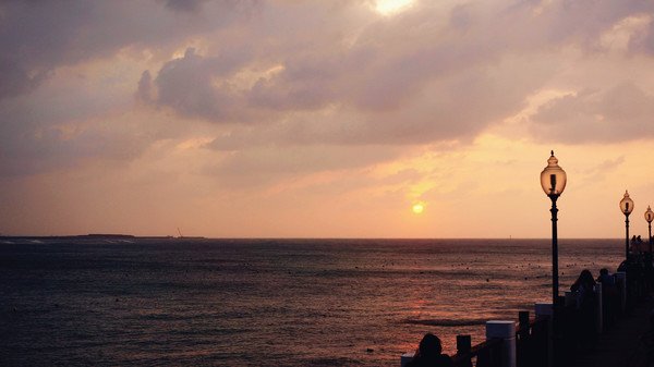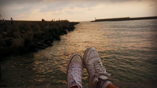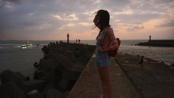 海平面渐渐泛起金色的波光,耳边似乎响起阿信磁性的声音“走到淡水的海岸/两个人的爱情/已经无人看已经无人听,啊啊·····”淡水海岸边的爱情啊,浪漫又哀伤。