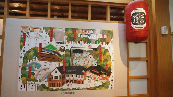 博物馆进门,换拖鞋。迎面是一副Q版地图,北投的景点都比较集中,不怕迷路哒~!