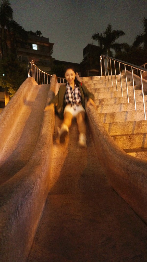 《康熙来了》中经常提到永康街,这条集美食、咖啡馆、精品店的街道,有着浓浓的文艺气息。街旁的小滑梯,顿时让我心生童趣。额,额,介个,没开运动模式,照片成浆糊了~~