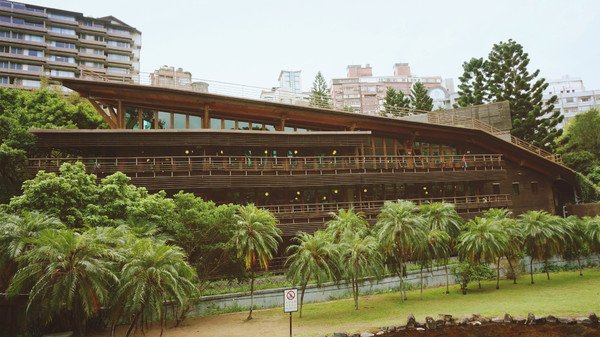 沿着北投公园往前,就能看到台北市立图书馆北投分管啦~!它隐匿在绿树丛中,曾入选全球最美的25家公立图书馆。木质建筑在绿荫中散发着书卷的气息。