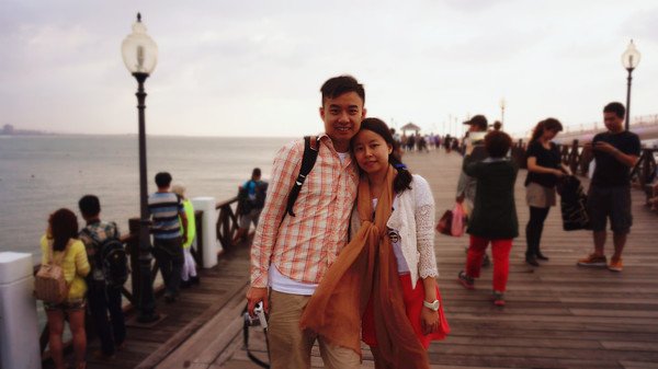 天色还早,码头上已经有好多来等待夕阳的情侣咯!情人桥9月中旬开始,封闭保养一个月,我们无法上桥~~呜呜。继续等日落~~~