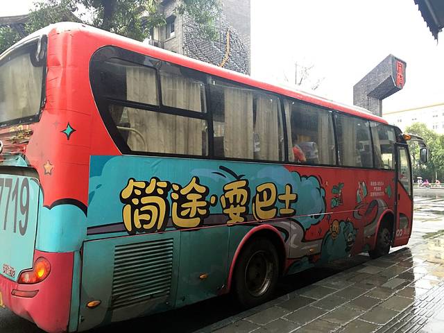 而且最让我满意的就是“简途旅行”的直通巴士是从宽窄巷子集合出发,就在我家门口呀,哈哈,好方便,坐这么可爱的大巴出行,心情怎能不好呢。