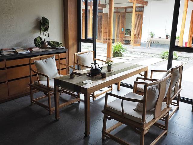 进入院子后,右手边是作品陈列区和休息区,处处都显得清新淡雅,让浮躁的心马上就安静了下来。