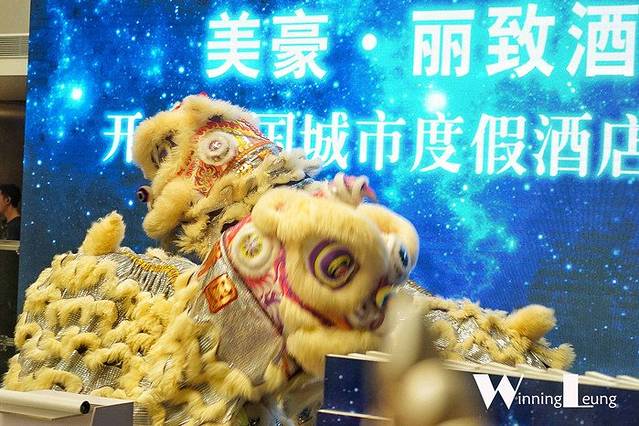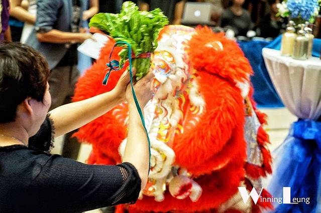 当日少不了有广东传统舞狮开场,鼓声锣声震天。