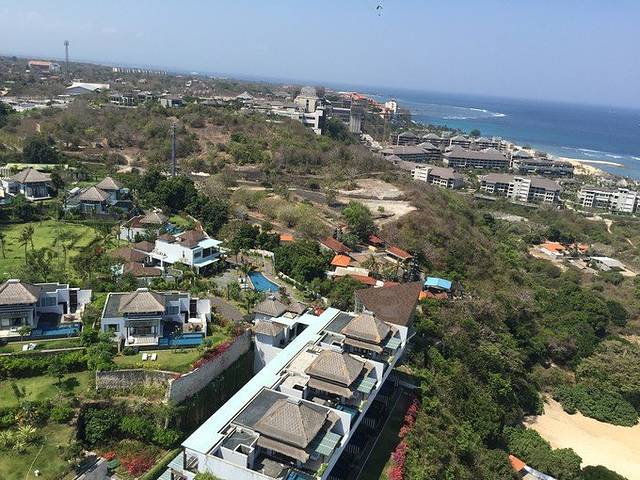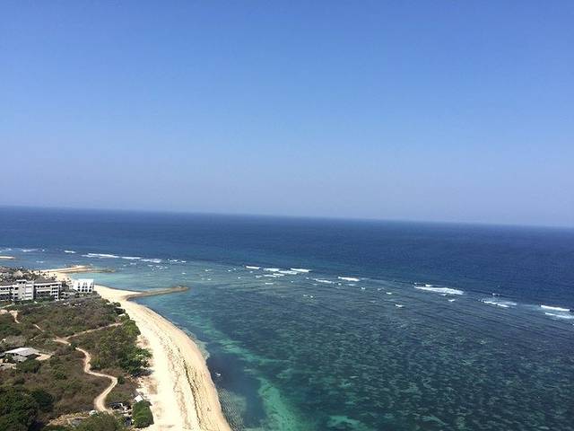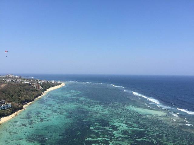 下午来努沙杜瓦玩滑翔伞。悬崖下是大海,这里的海好蓝、好美。