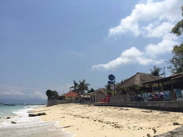 蓝梦岛是距离巴厘岛一小时船程的小岛,岛上酒店很多,娱乐设施很完善。因为我在蓝梦岛上待的时间比较短,所以只是在下船地方的附近沙滩玩了一会儿水。建议时间充足的,可以在这里多住几天。人不是很多,很惬意。听说有个美的心碎的“海洋的眼泪”,这是在海边一个岩洞,被海水冲击形成巨大的海浪和水雾。不知道是谁取了“海洋的眼泪”这么美的名字,我好后悔。你们帮我去看看吧...