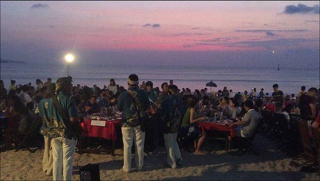 金巴兰海滩位于巴厘岛机场南部,海滩狭长,日落时金色的余晖洒满海面,显得格外温馨和浪漫,可以一边欣赏落日,一边品尝海鲜BBQ。