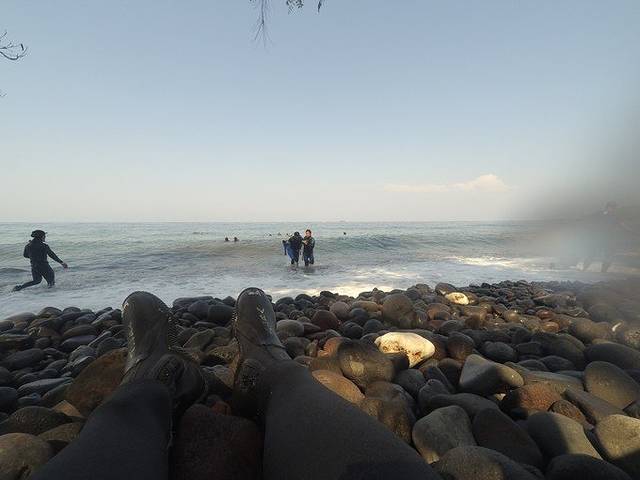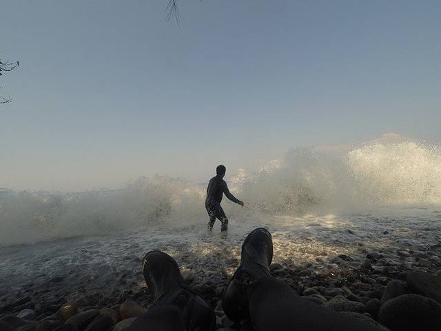 因为铅块跟氧气瓶的本身的重量,就让我寸步难行。外加今天图蓝本的大浪,我出海全是靠别人把我拉到岸上的。一点力气都没有了。