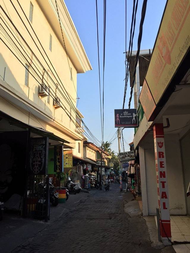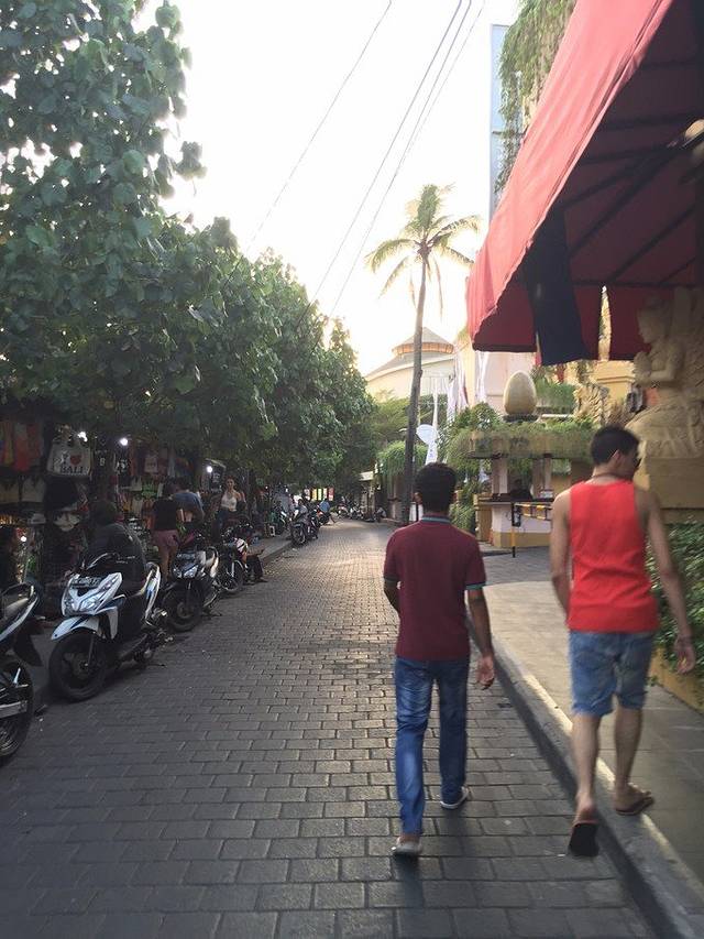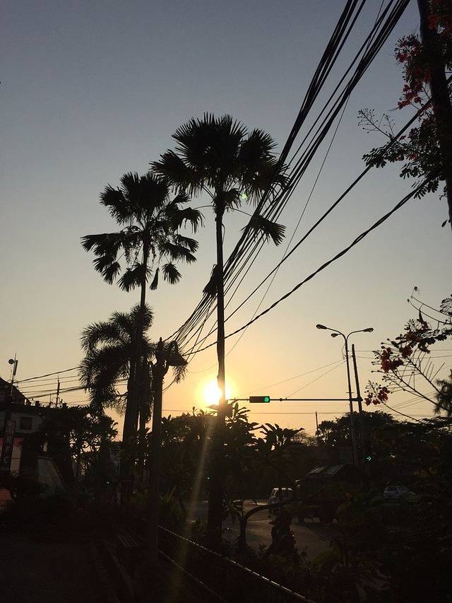 巴厘岛没有高楼,居民都是住着两三层的小屋子,屋子外面有一个自己的小院子,院子里种满了树,一眼看过去,分不清是屋子在树群中,还是树在连片的屋子中。主干道两旁也有各种成排的店铺。这个时间街上的车不多,在车流中熙熙攘攘地穿梭的许多摩托车,巴厘岛山路崎岖,居民的主要代步工具就是摩托车,几乎每家都会有一两辆,一般孩子十二三岁就学会骑摩托车了。