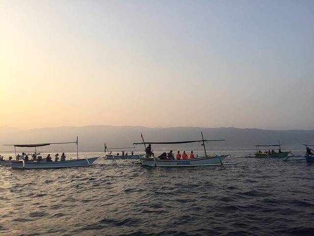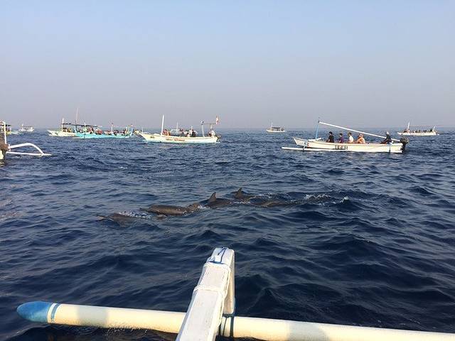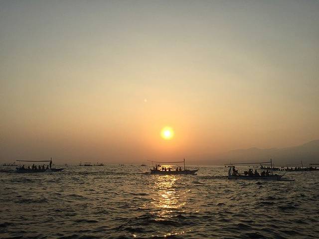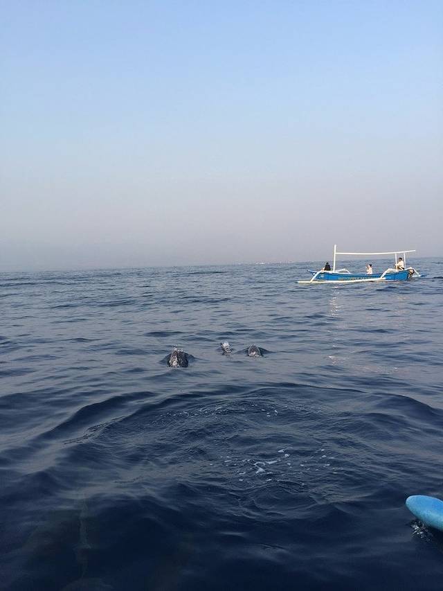 凌晨4点钟,睡眼朦胧的出海看海豚,虽然这次来巴厘岛带了单反,但是嫌他重就从来没带出过门。美好的日出,只能用手机拍一拍了。不过后面发现这样也救了我的相机,蜘蛛船开得很快海浪冷不丁拍打一下,相机估计就报废了。所以大家看海豚记得带防水的电子设备哦,手机的防水袋一定要带啊!