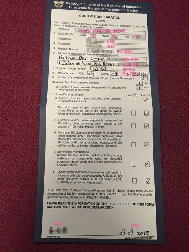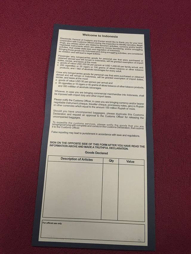 对于入境卡问题,出发前在网上研究过很久。巴厘岛入境卡居然有各种版本...我这个应该是比较新的了吧。给大家参考下。