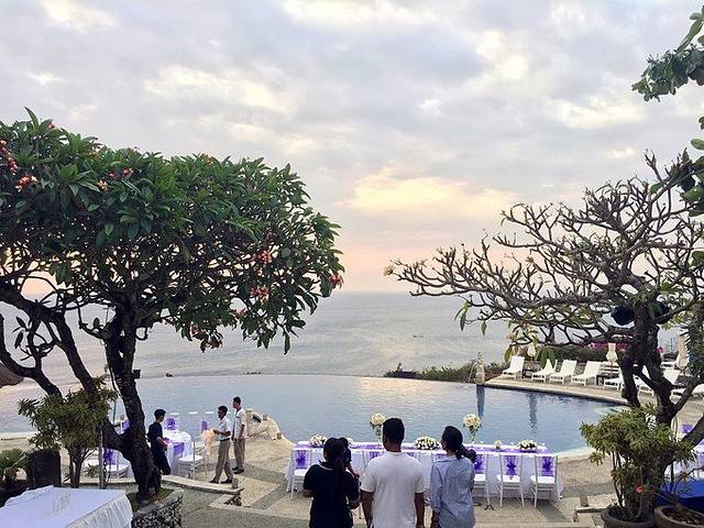 蓝点的下午茶我是从淘宝上订的,不是很推荐所以在这里就不贴网址了。下午茶的地方在蓝点里的另一个小泳池旁,其实也就是个进蓝点的门票。吃完下午茶,走去海边著名的无边游池跟教堂,正好看到有新人包场举办婚礼,就只能远远看看了。
