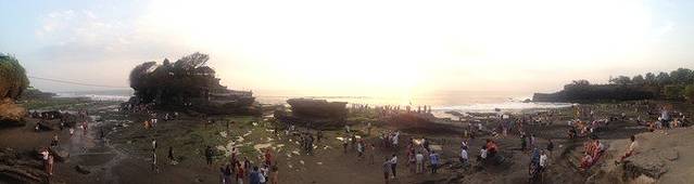 Tanah Lot(海神庙)盖在海边的一块巨岩上,它是巴厘岛最著名的寺庙之一。涨潮时,此庙四周环绕海水,和陆地完全隔离。落潮时方可以相通。海神庙建于十六世纪,祭祀海神。据说在建造海神庙之前,有位高僧来到这里看见了巨石里的洞,到了洞里以后却发现里面的海水不是咸的而是淡的,原来经过岩石的过滤后海水就变淡了,从此就建造了海神庙来保护里面的“圣水”。巨岩下方对岸岩壁,有一小穴发现几条有毒的海蛇,传说是此寺庙守护神,防止恶魔和其他的入侵者。据说寺庙建成时忽逢巨浪,寺庙岌岌可危,于是寺内和尚解下身上腰带抛入海中,腰带化为两条海蛇,终于镇住风浪。从此海蛇也成为寺庙的守护神。
