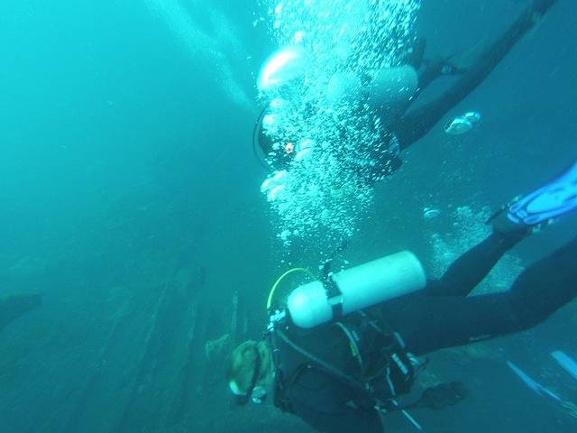 我的第一潜就是从这里下去的,没敢带小蚁相机下去,毕竟、、、、我连自己都顾不好。教练真的很贴心,一直在我身边。随时问我有没有什么不舒服的地方。一潜结束后便是中午了,上岸吃了午饭后休息了会,准备坐车去看沉船的地方,开始下午的潜水。