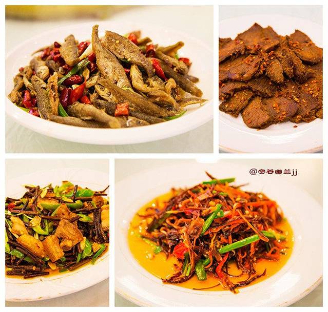 铁罐饭、通江土猪肉、菜豆腐稀饭、葱卷、银耳羹、野竹笋吨腊猪蹄、碗儿糕、酸辣粉、包谷馍馍、油酥包谷粑粑等。