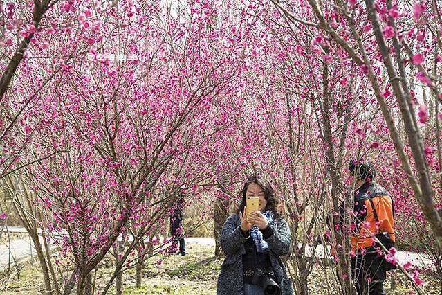我们则陶醉在粉嫩色的梅花中,寻找角度拍照、留影,保存这里美丽的春天!